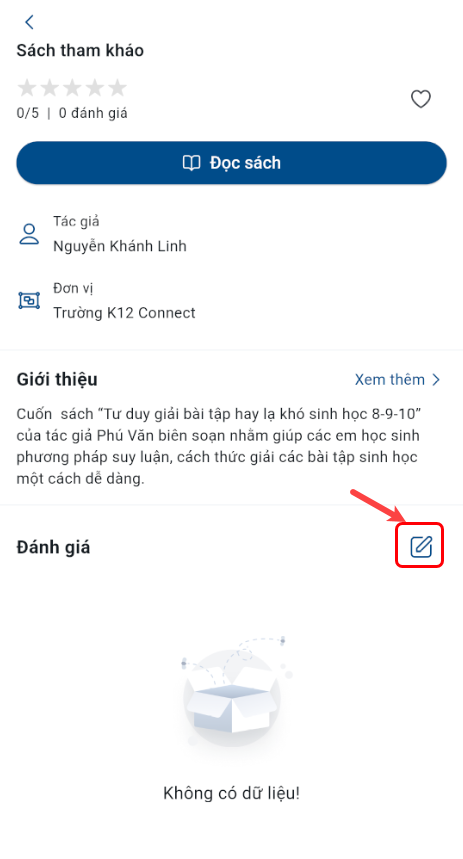 Bước 1: Tại tính năng kho học liệu > chọn vào học liệu cần đánh giá