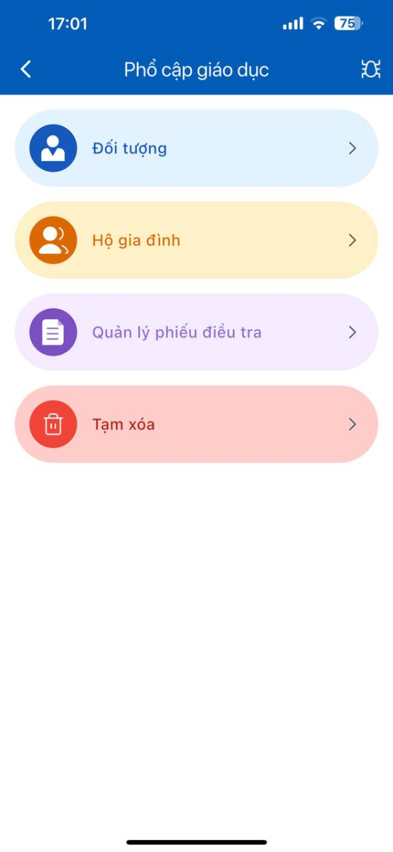 Bước 1: Đăng nhập bằng tài khoản nhà trường có quyền điều tra phổ cập