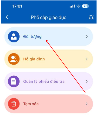 Bước 1: Danh sách chức năng > Touch Đối tượng