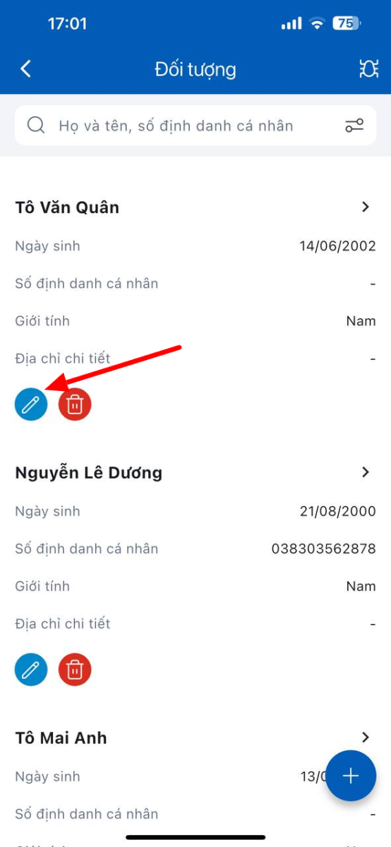 Bước 1: Danh sách > Touch icon chỉnh sửa