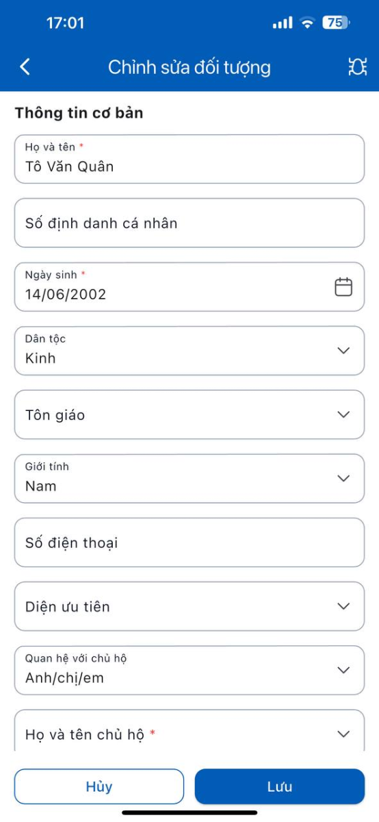 Bước 2: Hiển thị form cập nhật > Nhập đầy đủ thông tin các trường > Touch Lưu thực hiện cập nhật đơn thành công