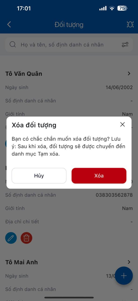 Bước 2: Hiển thị form xác nhận > Touch xóa thực hiện xóa thành công