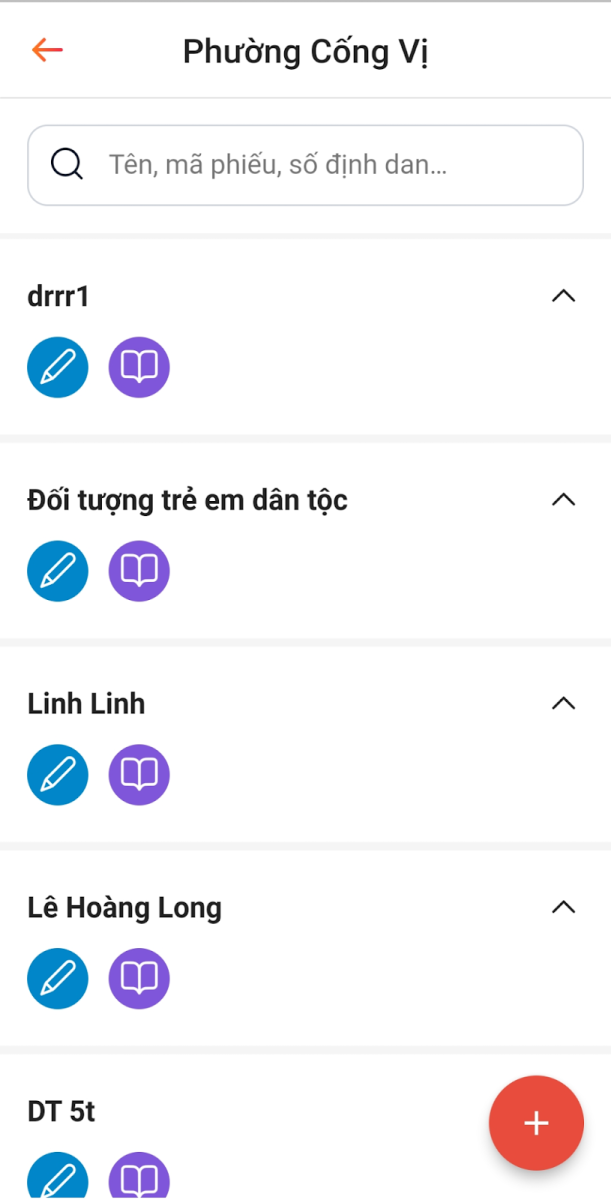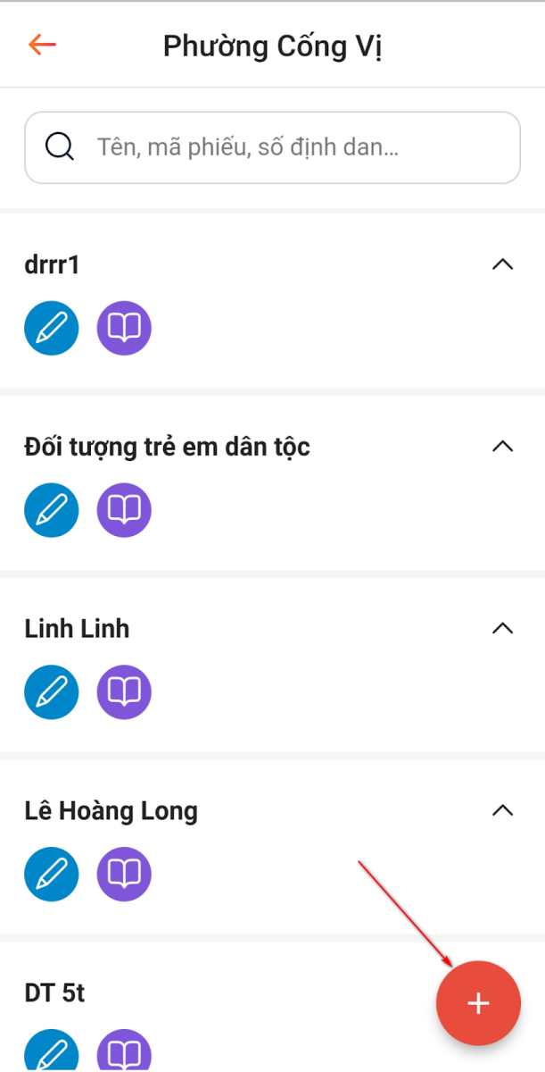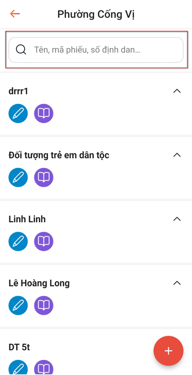 Bước 1: Danh sách các phiếu điều tra của đơn vị > Touch icon Thêm mới