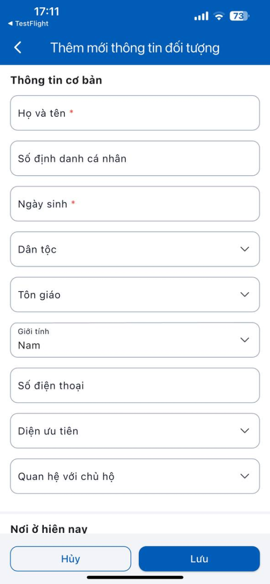 Bước 2: Hiển thị form thêm mới > Nhập đầy đủ thông tin các trường > Touch Lưu thực hiện thêm mới đơn thành công