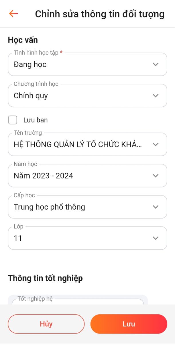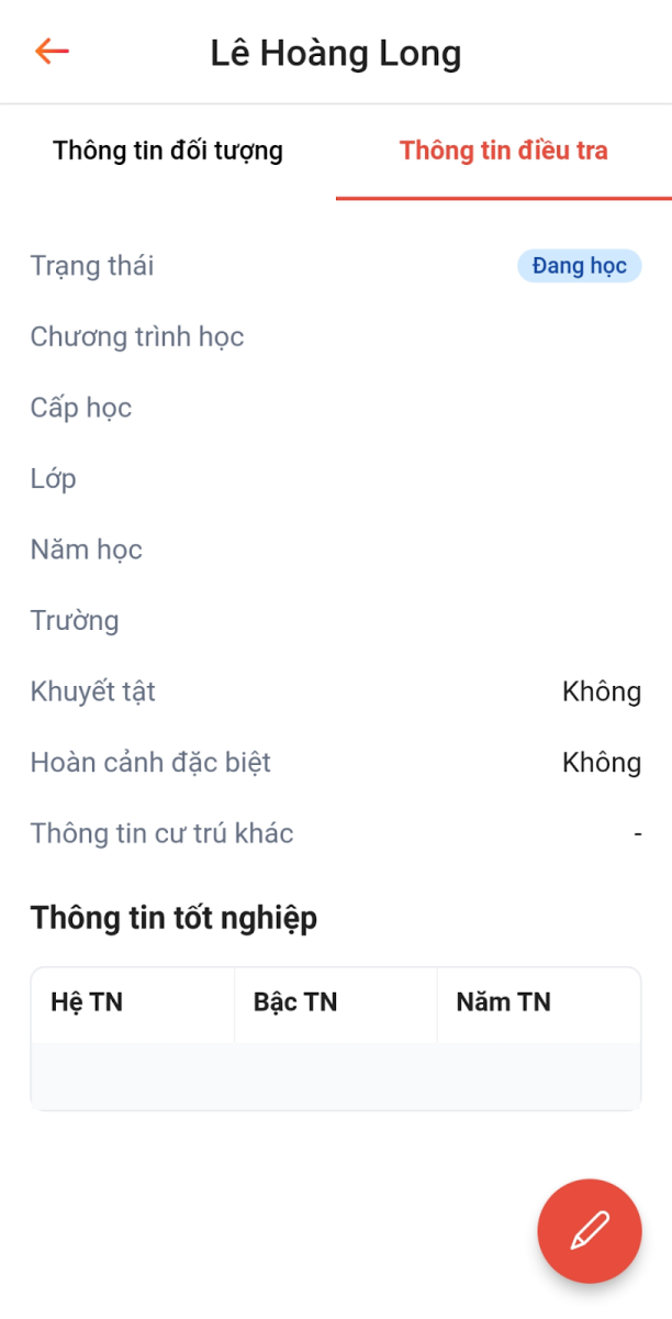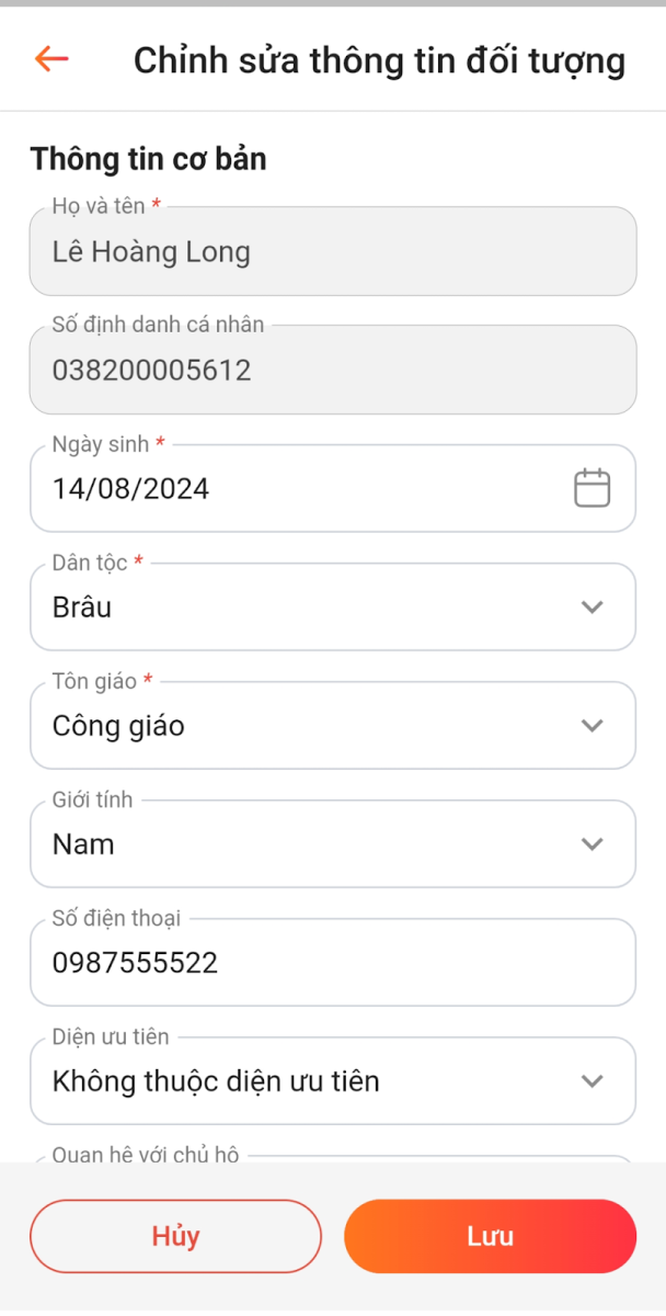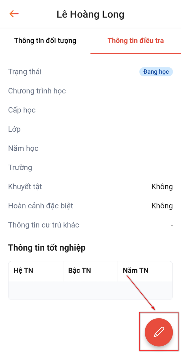 Trên màn hình chi tiết thông tin đối tượng> Touch icon Chỉnh sửa