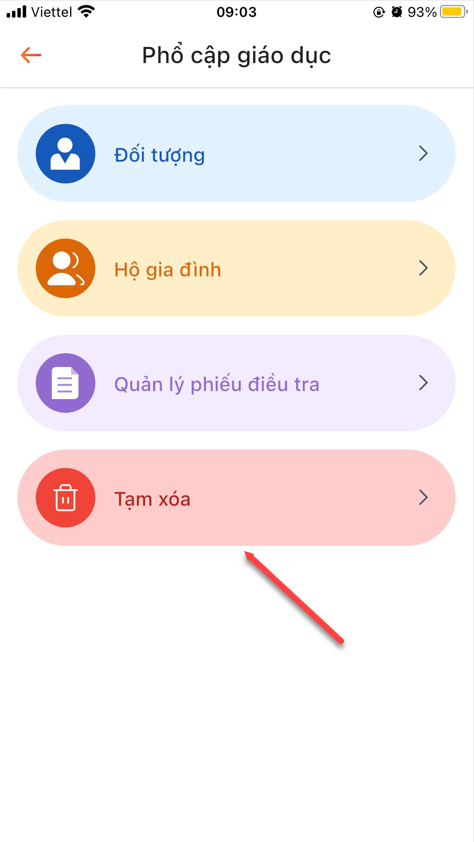 Bước 2: Touch menu Tài khoản> Touch module Phổ cập giáo dục