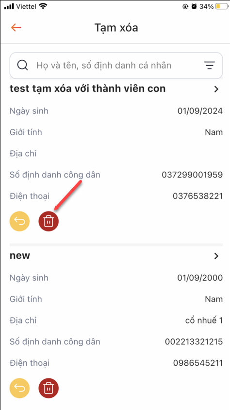 Bước 1: Danh sách > Touch icon xóa