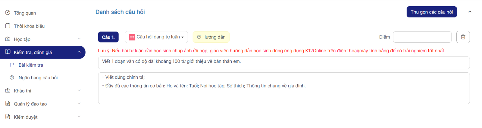 Cách 2: Nộp bài qua ứng dụng K12Online trên máy tính