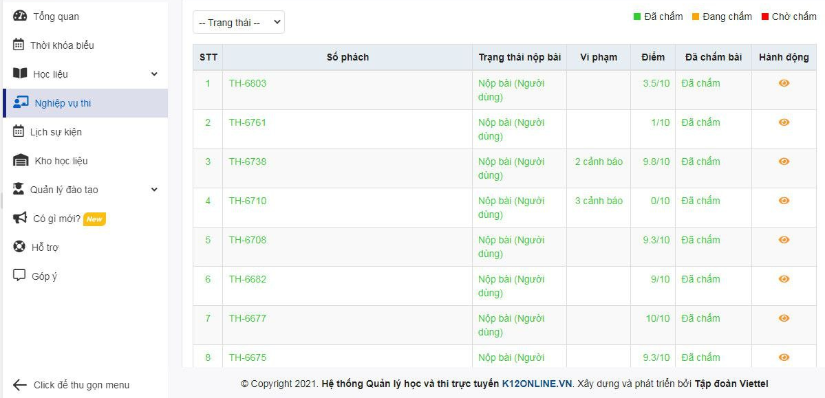 Kết quả sau khi hoàn thành chấm bài, các bài thi được phân công sẽ chuyển trạng thái thành Đã chấm.