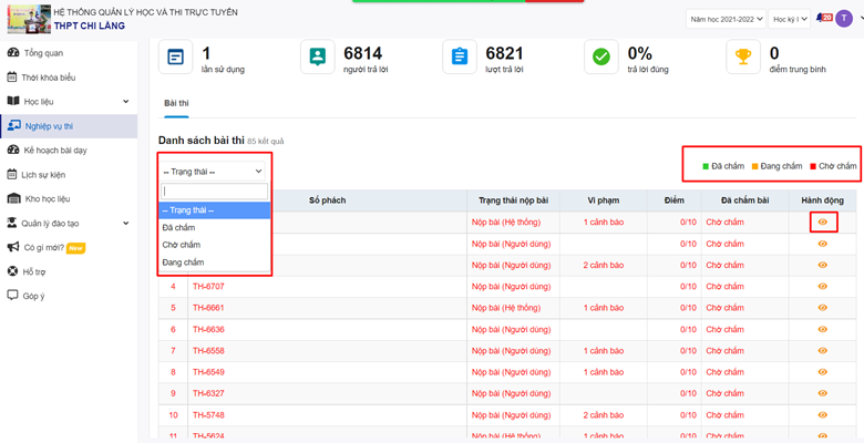 Bước 3: Giáo viên vào chấm lần lượt từng bài thi.