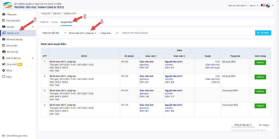 Trường hợp 2: Giáo viên duyệt điểm thực hiện chấm lại
