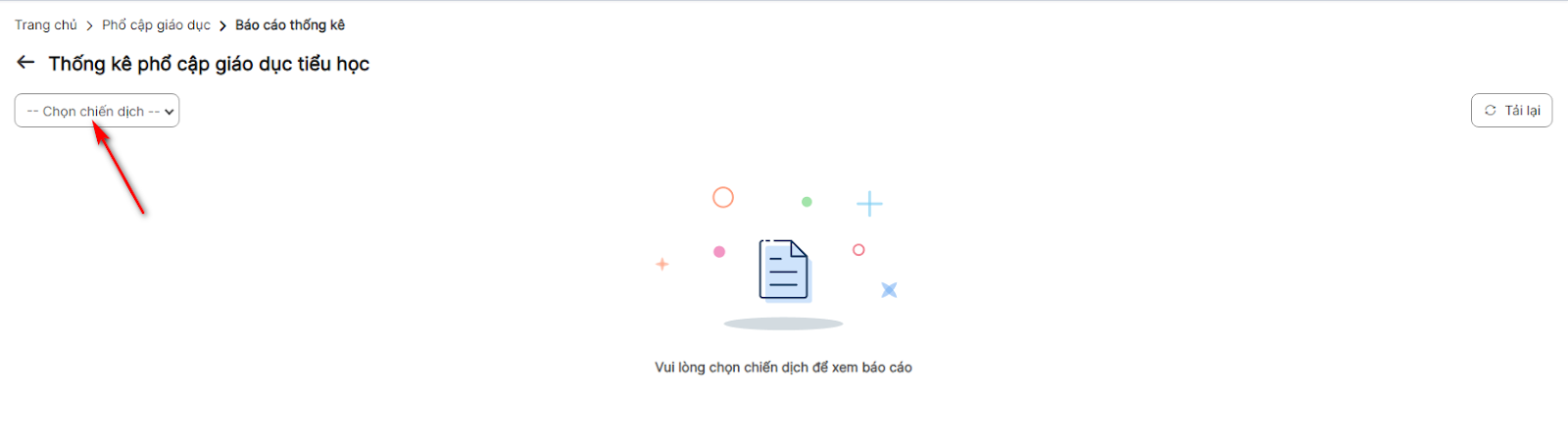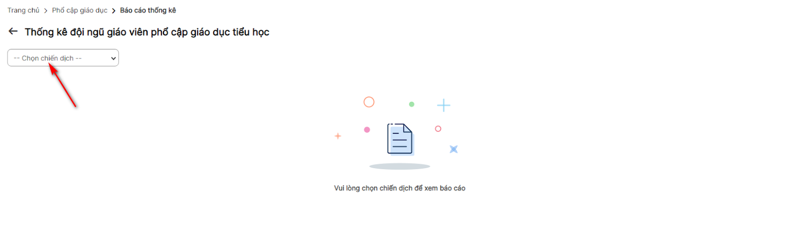 Bước 2: Trang chủ > Click vào module Phổ cập giáo dục > Click Báo cáo thống kê