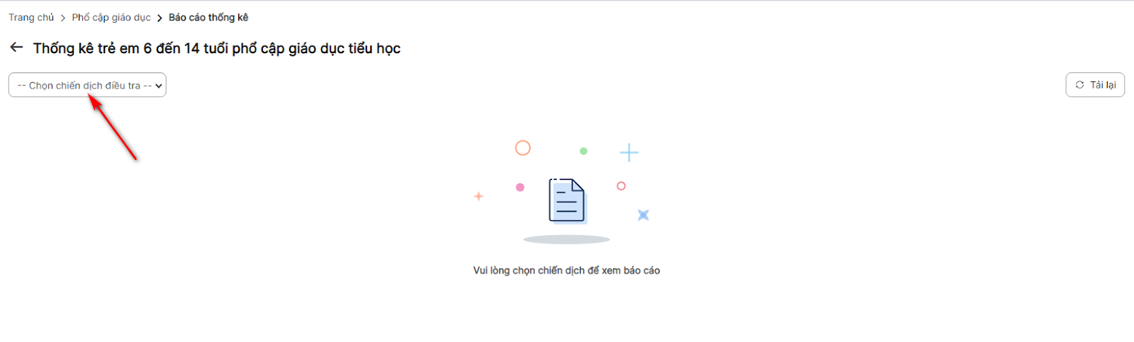 Bước 2: Hiển thị màn hình báo cáo > Chọn chiến dịch điều tra để xem báo cáo