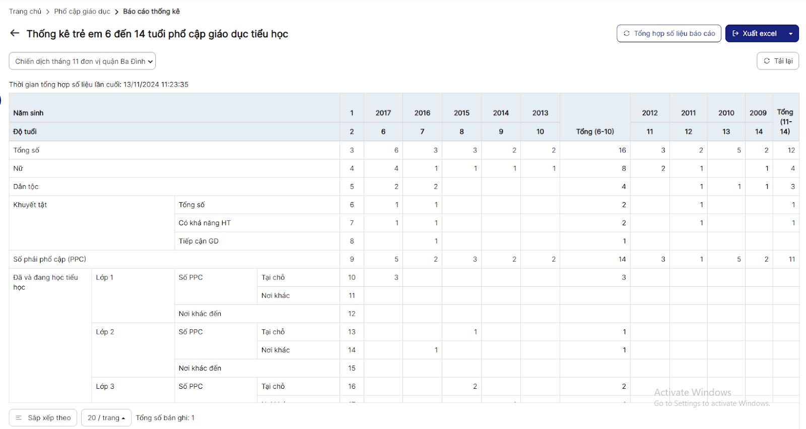 2. Thống kê trẻ em 6 đến 14 tuổi phổ cập giáo dục tiểu học