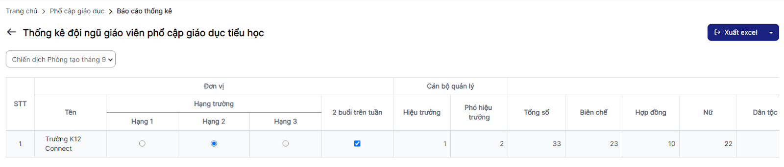 3. Thống kê đội ngũ giáo viên phổ cập giáo dục tiểu học