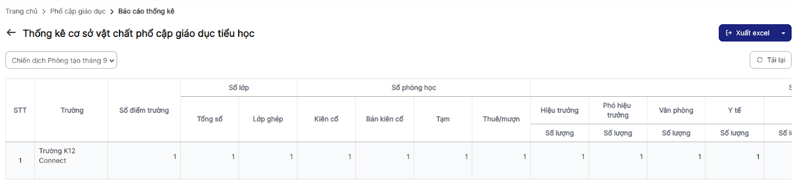 4. Thống kê cơ sở vật chất phổ cập giáo dục tiểu học