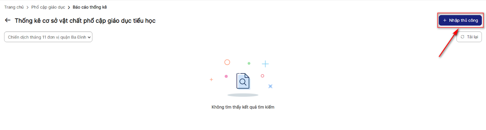 Bước 1: Danh sách > Chọn chiến dịch chưa có dữ liệu > Click button Nhập thủ công