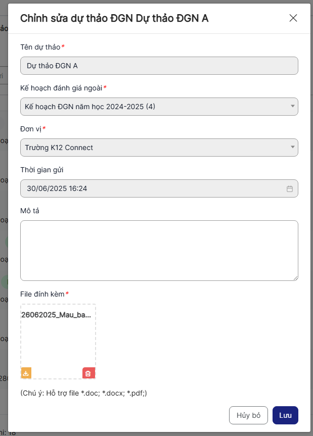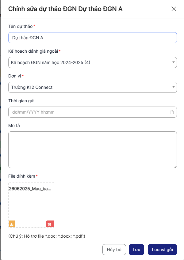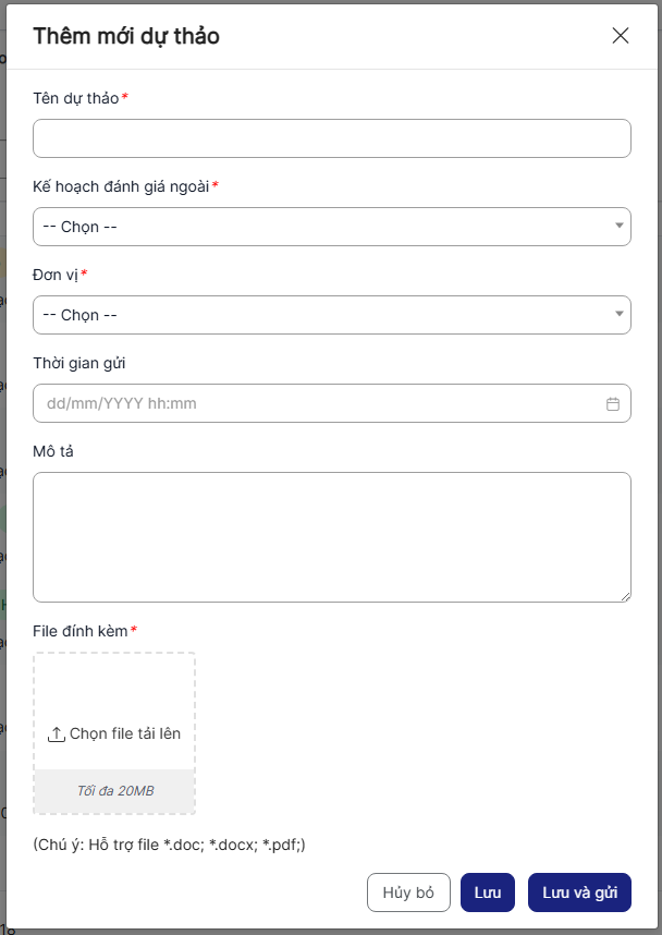 + Kế hoạch đánh giá ngoài: Bắt buộc nhập
