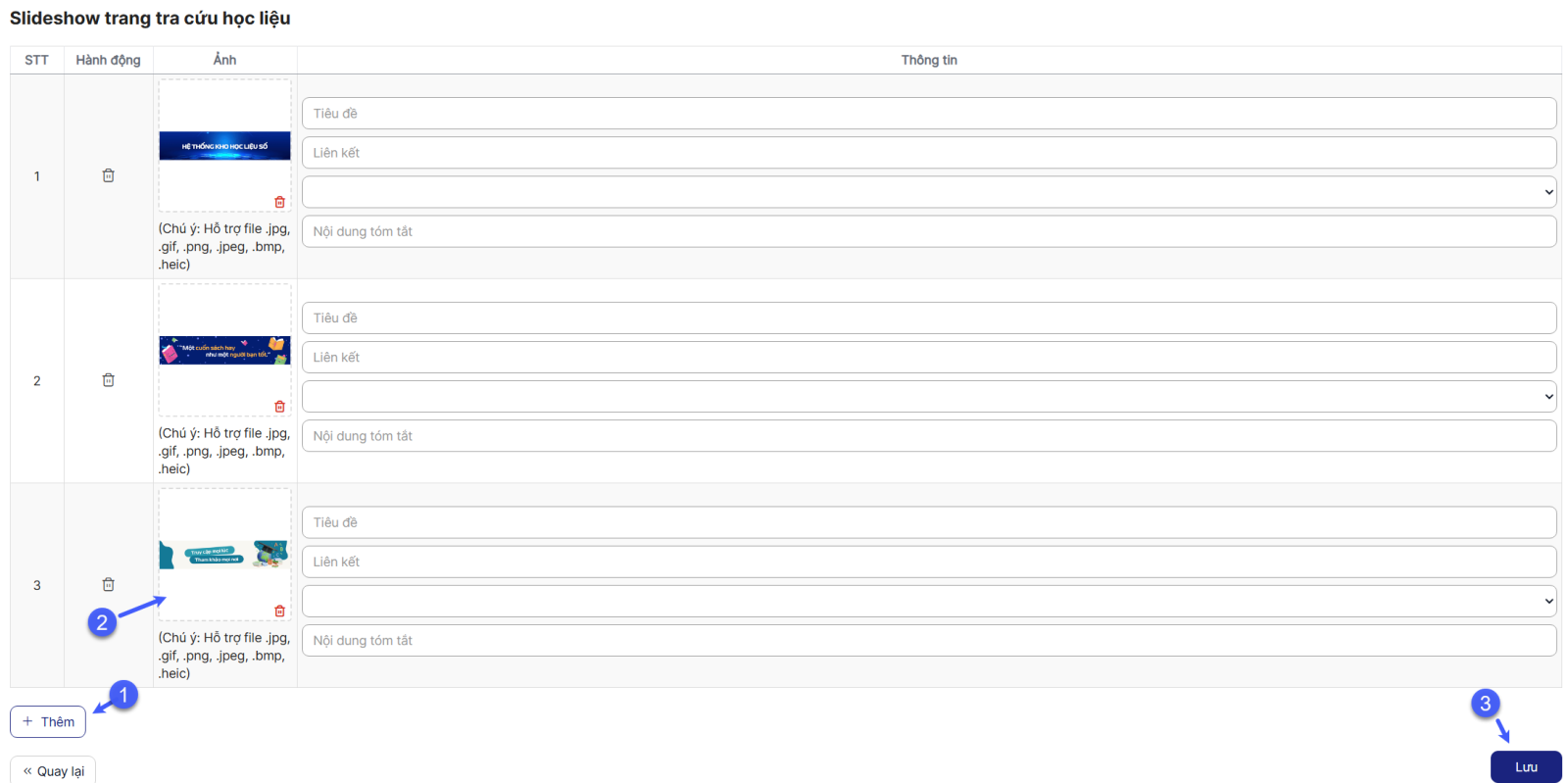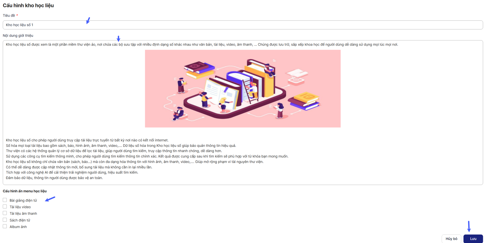 Bước 3: Chọn nút Lưu để thực hiện lưu thành công cấu hình kho học liệu