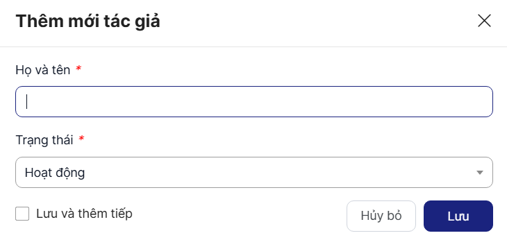 Bước 1: Chọn menu Quản lý khai báo > Chọn menu Tác giả