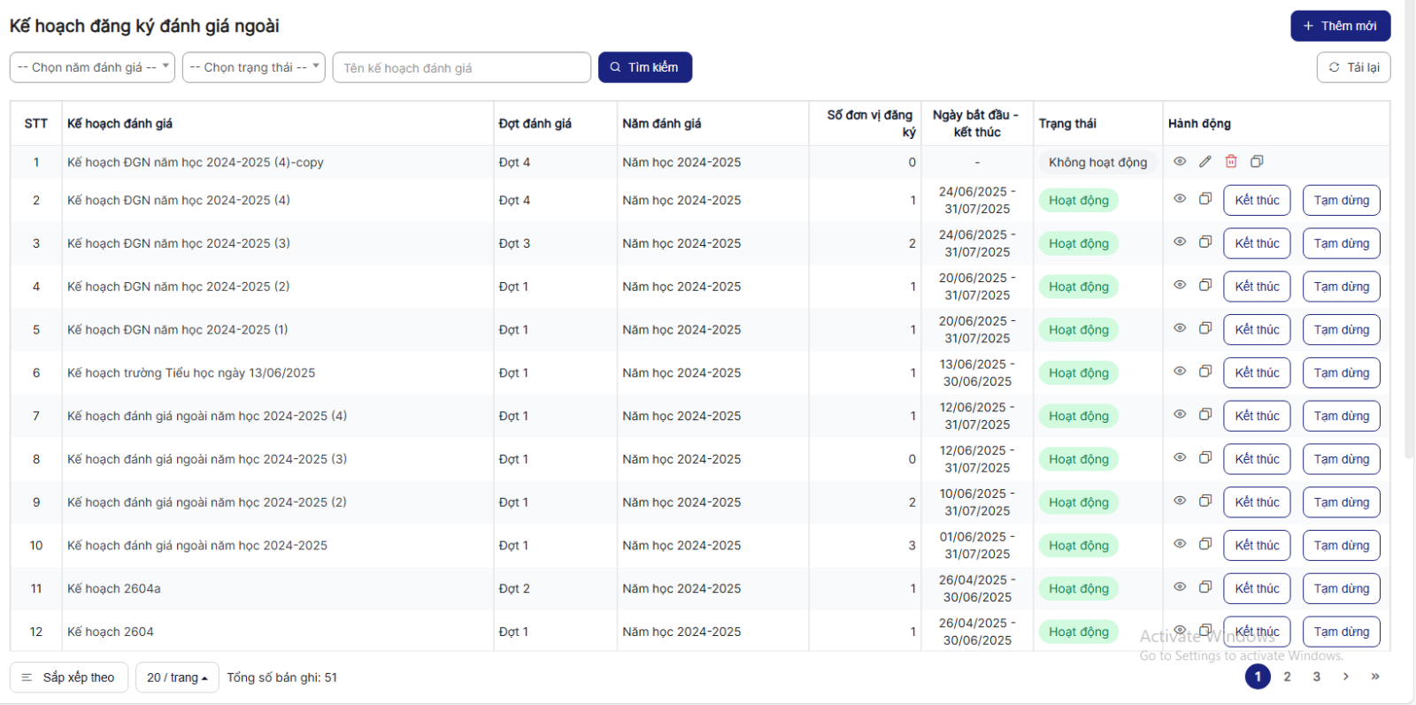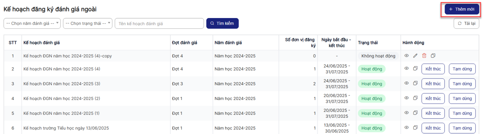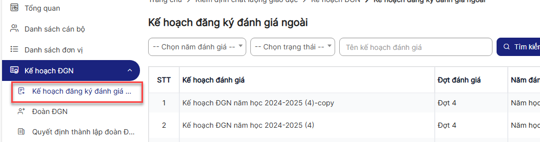 1.1.Danh sách Kế hoạch đăng ký đánh giá ngoài