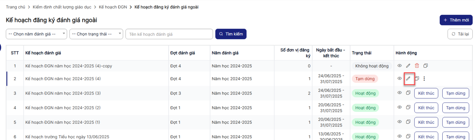 1.3. Chỉnh sửa Kế hoạch đăng ký đánh giá ngoài