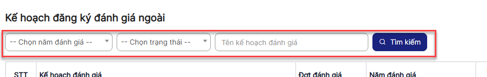 1.8. Tìm kiếm Kế hoạch đăng ký đánh giá ngoài