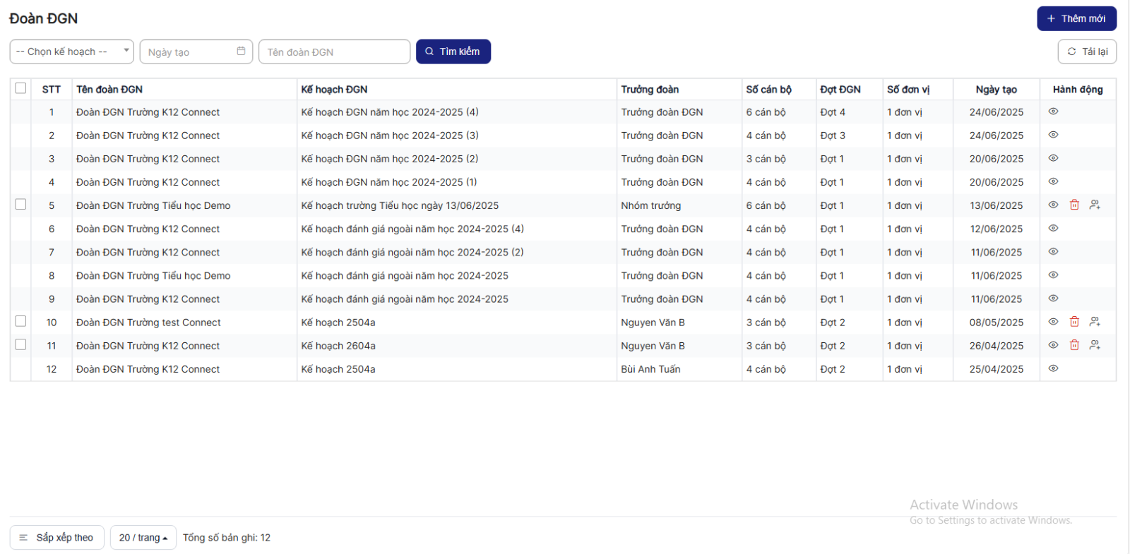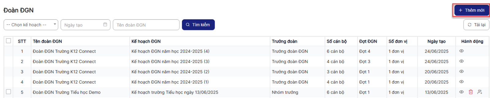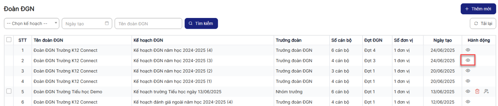 Bước 4: Hiển thị danh sách Đoàn ĐGN