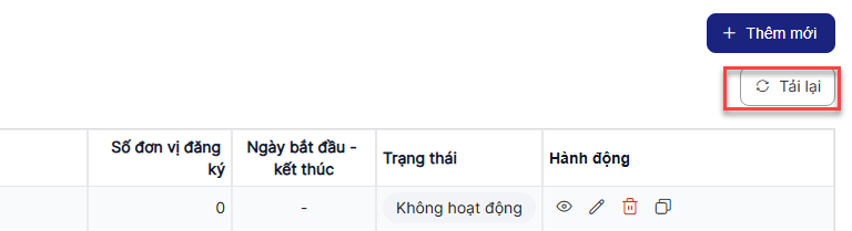 Trên danh sách > click button Tải lại > Thực hiện tải lại danh sách.