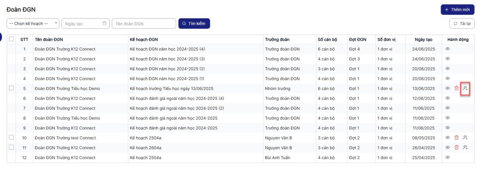 2.1. Danh sách Đoàn ĐGN