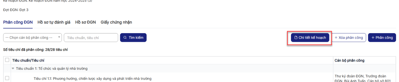 Bước 2: click tab Phân công ĐGN > Trên màn hình, click Chi tiết kế hoạch