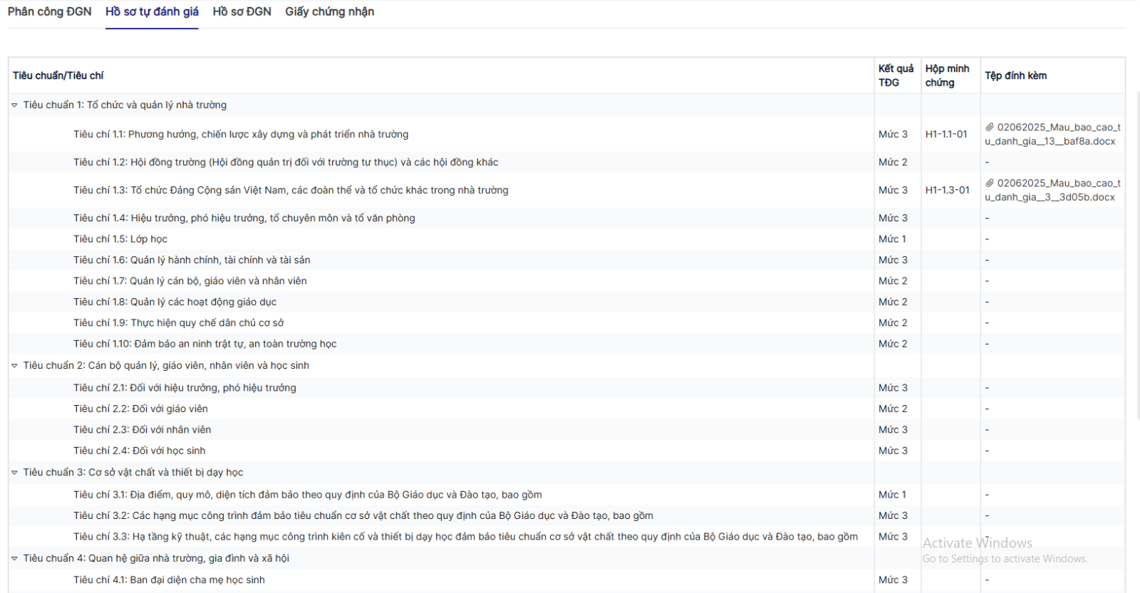Bước 2: click tab Hồ sơ tự đánh giá > Trên màn hình, xem hồ sơ tự đánh giá