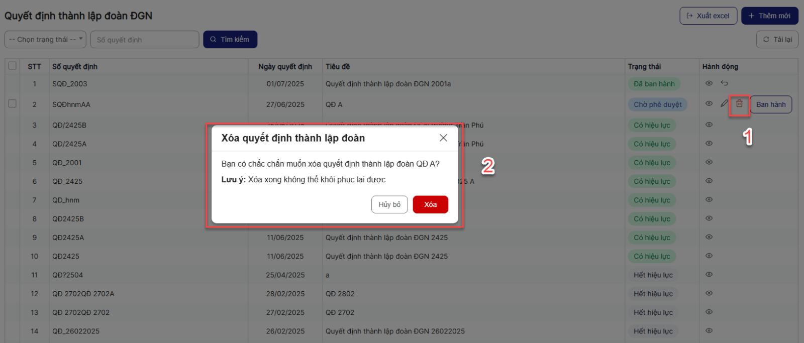 3.4.Xóa Quyết định thành lập đoàn ĐGN