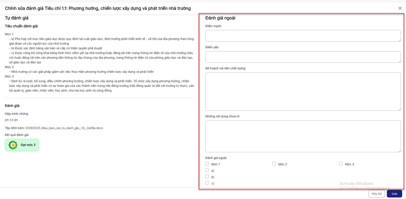 + Click Lưu để hoàn thành việc đánh giá.
