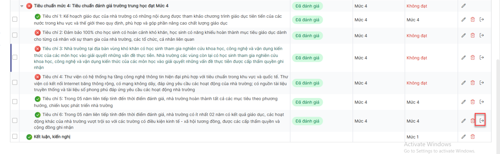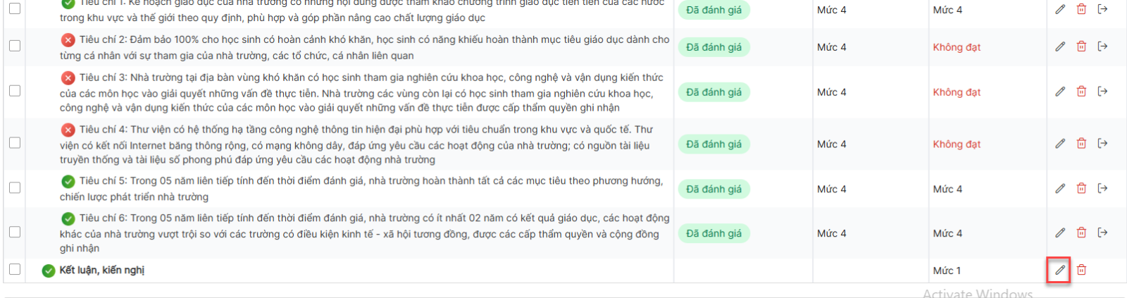 Bước 1: Trên màn hình danh sách> Click icon chỉnh sửa 1 tiêu chuẩn