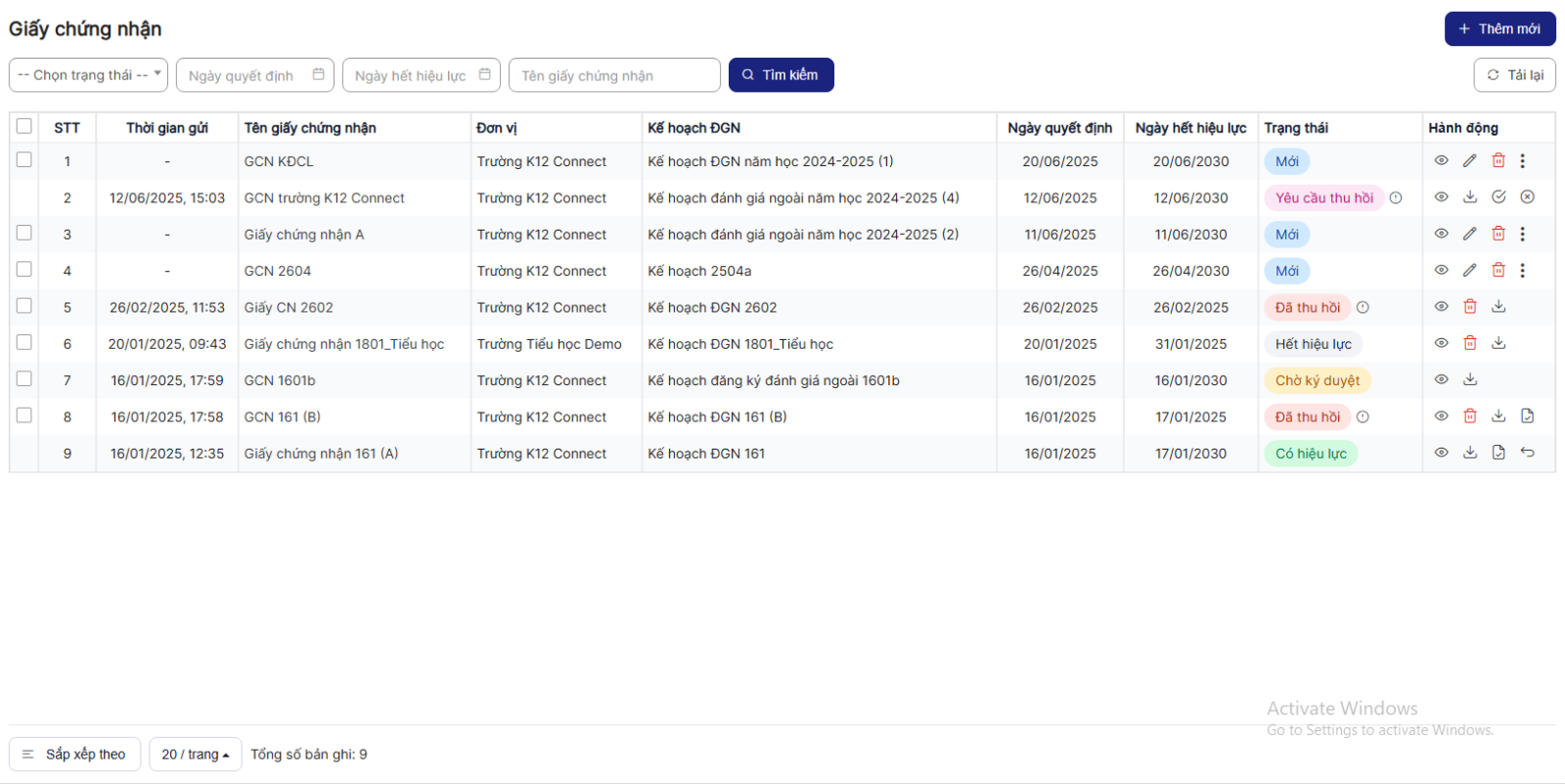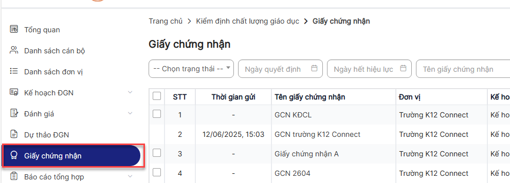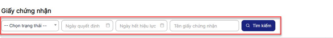Bước 4: Hiển thị danh sách Giấy chứng nhận