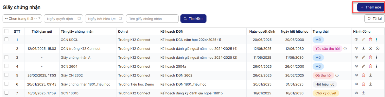 2. Thêm mới Giấy chứng nhận