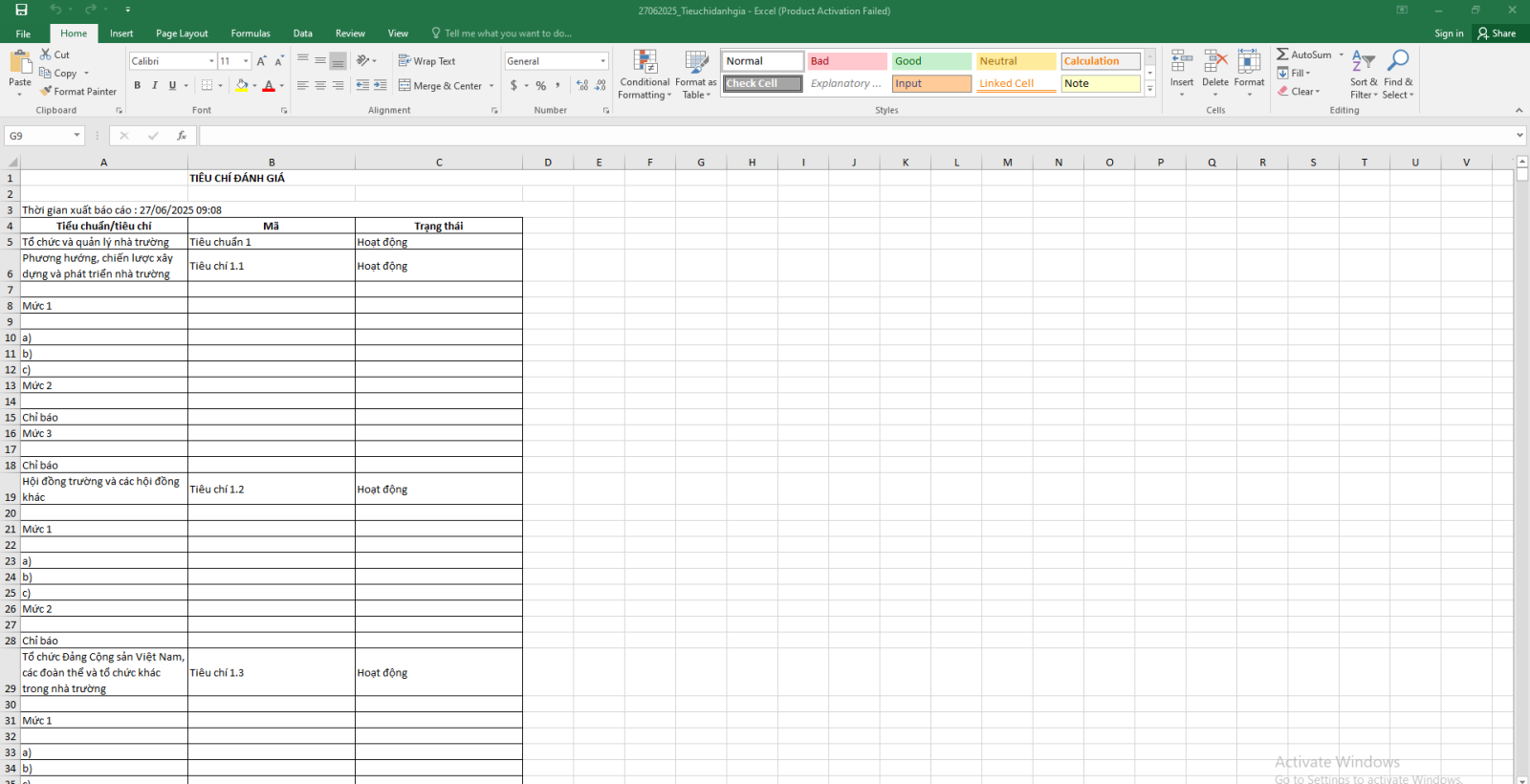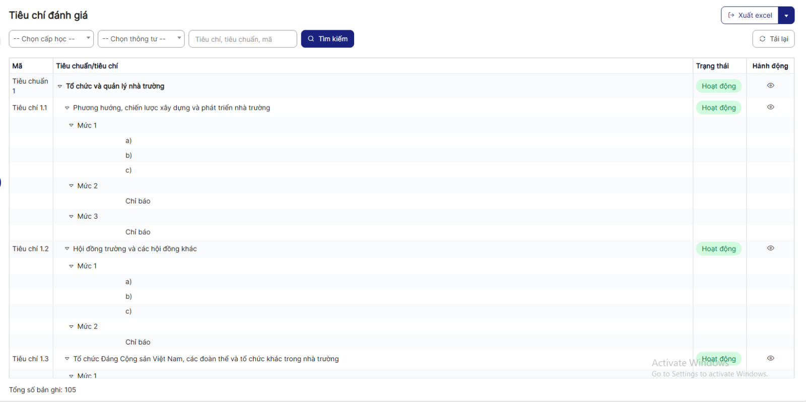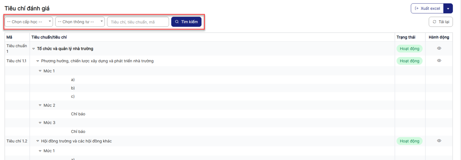 2.3. Xuất excel Tiêu chí đánh giá