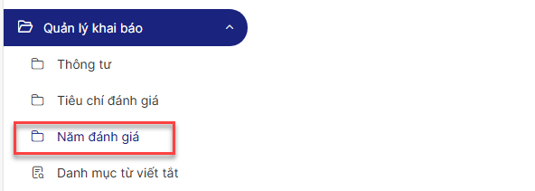 Bước 3: Click menu Quản lý khai báo > Năm đánh giá