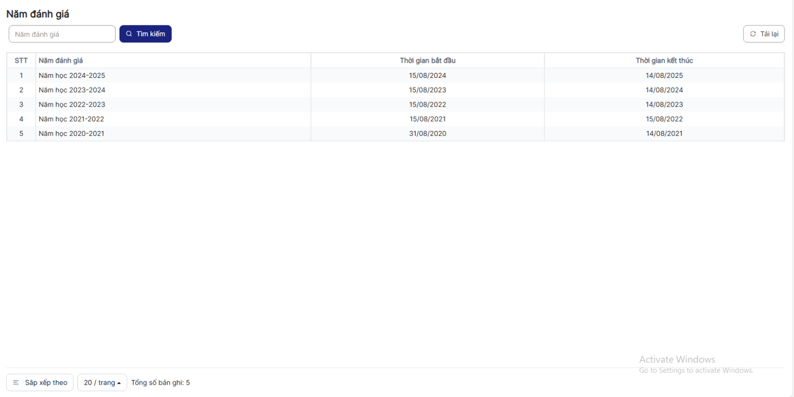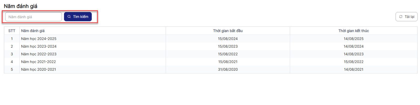 3.1. Danh sách Năm đánh giá