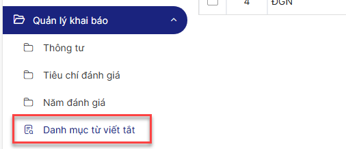 Bước 3: Click menu Quản lý khai báo > Danh mục từ viết tắt