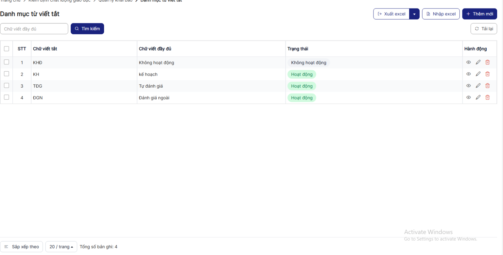 4.6. Nhập excel Danh mục từ viết tắt
