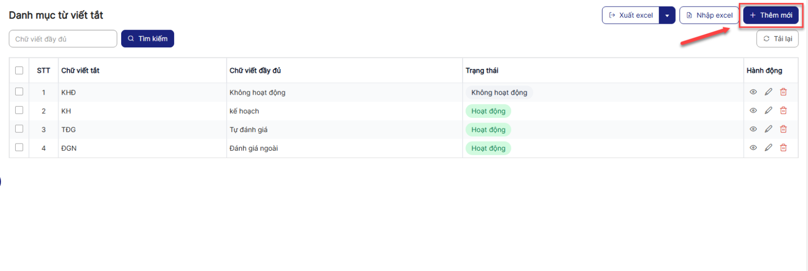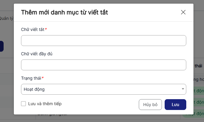 4.2. Thêm mới Danh mục từ viết tắt