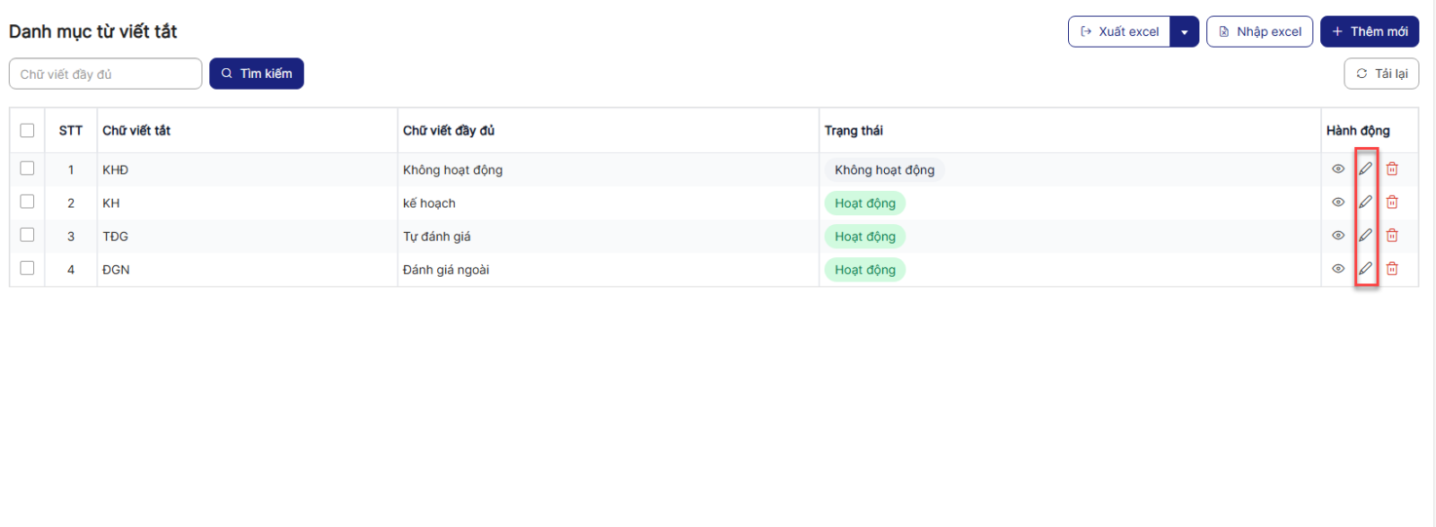 4.3. Chỉnh sửa danh mục từ viết tắt