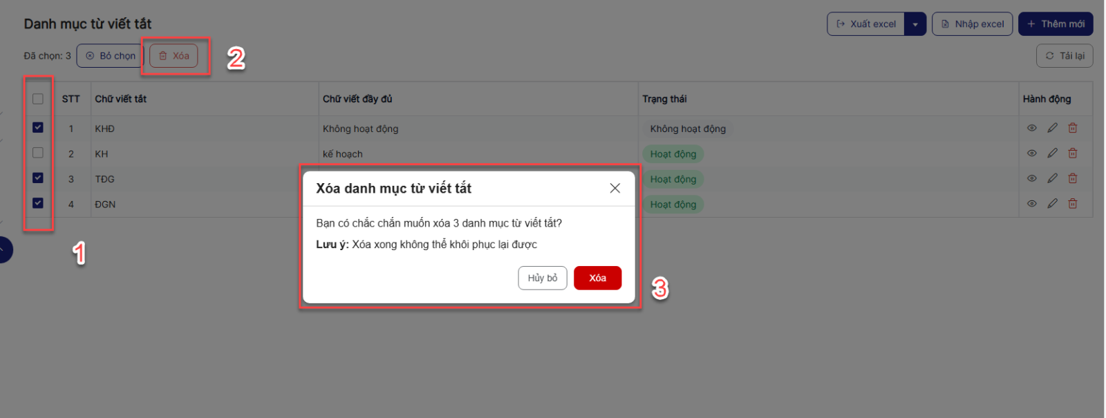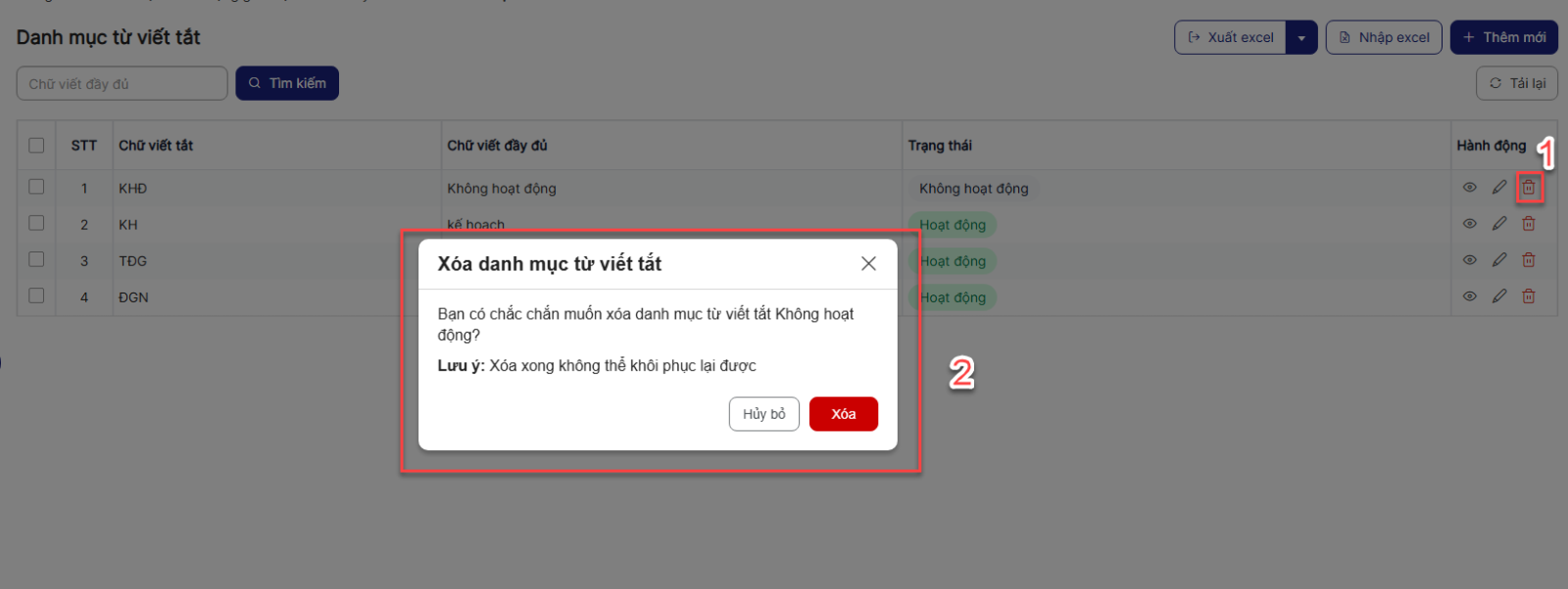 4.4. Xóa Danh mục từ viết tắt