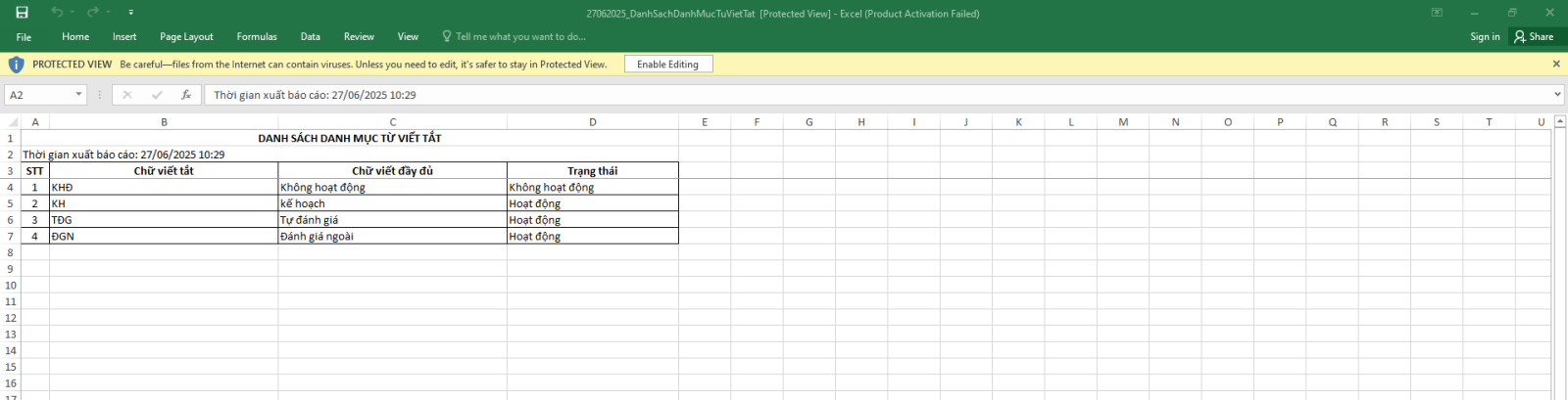 4.7. Xuất excel Danh mục từ viết tắt