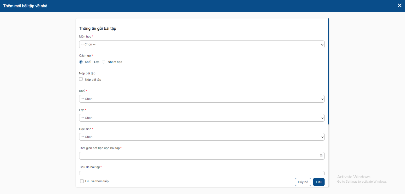 - Thời gian hết hạn nộp bài tập phải lớn hơn hiện tại
