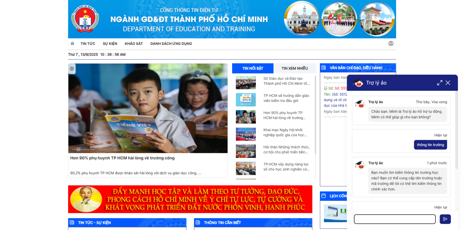 Bước 3: Nhập nội dung cần tra cứu. Trợ lý ảo sẽ trả lời tự động.