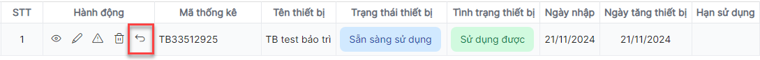Chú ý: Các thiết bị có chọn là Thiết bị ký gửi/đi thuê sau khi tăng thành công sẽ có thêm icon trả lại như hình: