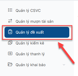 Bước 1: Vào menu Quản lý đề xuất > Chọn tab Đề xuất cấp phát